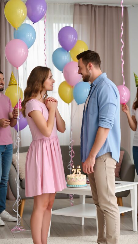 As the day went on, friends began arriving, bringing flowers, gifts, and laughter 🌸🎈🎁. Everything felt perfect. But then, after lunch, he asked me to follow him into the living room. The room was dimly lit, with soft candles flickering and a faint scent of vanilla lingering in the air 🕯️🌿. My heart beat a little faster. Something felt… different.