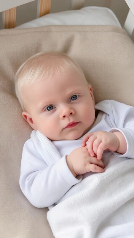 The child was born with hair as white as fresh snow. ❄️👶